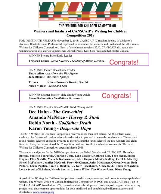 A big congratulation to all and a huge thank you to CANSCAIP & The Writers’ Union of Canada and the judges for encouraging new voices !