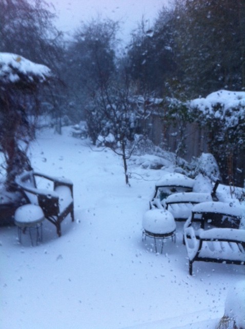 Woke up to one of those wild west coast snow storms we get every now and then.  A good day for staying indoors and writing.