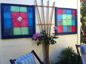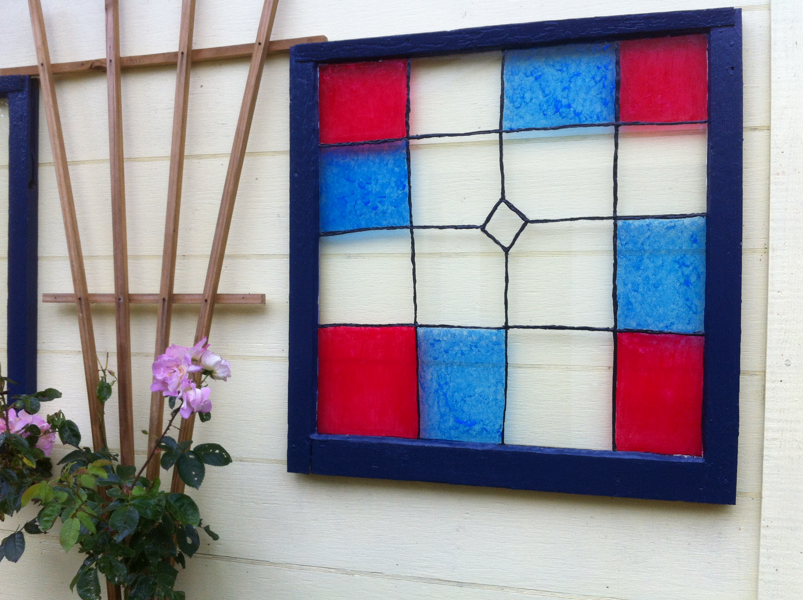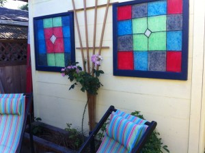 Ta Da! Here’s my latest outdoor art…faux stained glass windows.