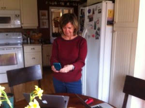 Had a great run today, partly inside…partly outside.  Yuck to rain.  But hurray to hot chocolate after.  Then my friend Julie Lawson came over for tea and a little wordpress session.  She’s actually videotaping this so she can figure it all out later on her own.  Hurray for i-phones and their wonderful little video cameras.